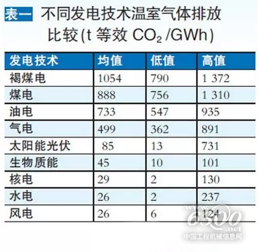 宏观角度,经济性的评价参考主要是对社会经济发展以及环境的影响。核能发电不会产生任何直接的二氧化碳排放量,但在核燃料循环过程中会产生间接排放,其程度取决于不同的环节和所使用的技术。研究表明,即使在排放量最高的情况下,核电的间接排放仍比化石燃料发电的直接排放低一个数量级之多。与同等规模的风电或水电总排放量相比(见表一),核电都不失为一种真正意义上的低碳技术。