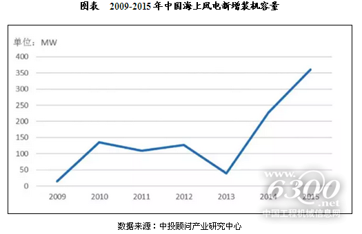 中投顾问发布的《2016-2020年中国海上风力发电行业投资分析及前景预测报告》指出,2015年中国风电新增装机和累计装机均位居全球之首,中国海上风电新增装机位居全球第三,累计装机位居全球第四位。而截至2015年底,中国海上风电装机容量占全国风电装机容量仅0.7%。