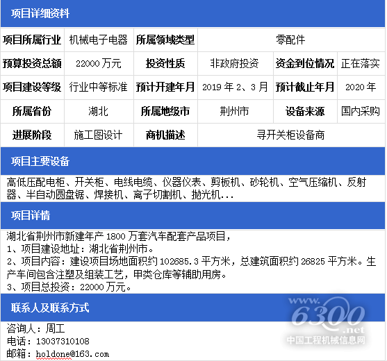 项目名称:湖北省荆州市新建年产1800万套汽车配套产品项目
