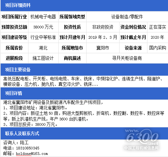项目名称:湖北省襄阳市矿用设备及新能源汽车配件生产线项目