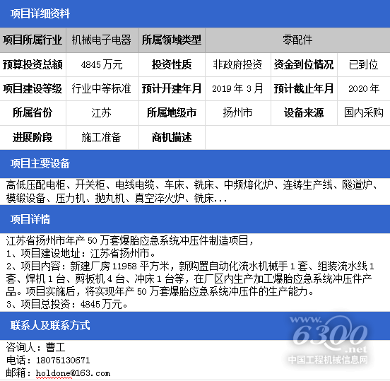 项目名称:江苏省扬州市年产50万套爆胎应急系统冲压件制造项目