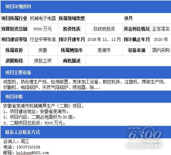 项目名称:安徽省芜湖市机械模具生产(二期)项目