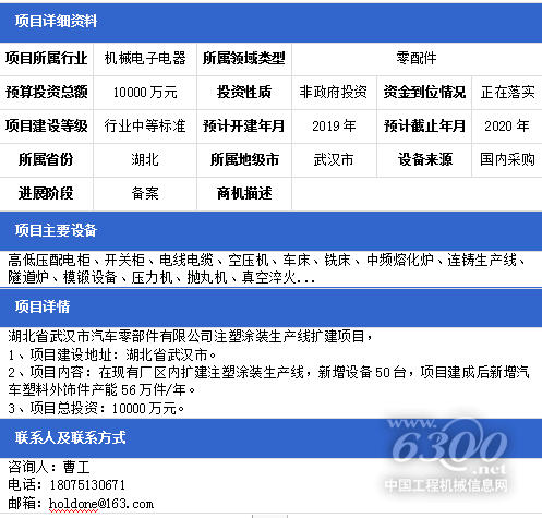 项目名称:湖北省武汉市汽车零部件有限公司注塑涂装生产线扩建项目