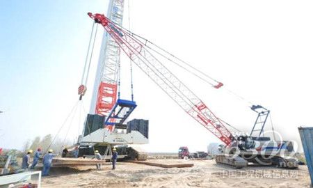 近日,中国能源建设集团江苏省电力建设第三工程公司承接了国华射阳51MW低风速风电场风机、塔筒及箱变吊安装工程。施工现场,一台中联QUY800履带起重机正在进行吊装作业,根据现场工况,采用 SHS标准风电杆头工况,用102m主臂加7m风电专用杆头,将吊车站位中心与塔筒中心控制在23m,依次吊装塔筒、机舱、轮毂和叶片。从10月18日首台风机吊装开始到11月20日,这台中联QUY800履带起重机已经成功吊装9台3MW风力发电机,34个工作日,9台3MW风机安装,平均不到3天吊装一台,如此高的工作效率是如何实现的呢?