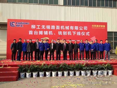 2014年1月10日,柳州 —柳工无锡路面机械有限公司首台摊铺机、铣刨机下线仪式1月3日在无锡隆重举行。中国质量协会工程机械分会侯宝佳秘书长、广西柳工机械股份有限公司王太平副总裁、柳工无锡路面有限公司吴小丰总经理,柳工无锡路面有限公司管理层、研发人员及全体职工共同见证了这一激动人心的时刻。