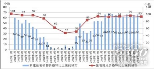 70个大中城市中新建住宅销售价格和105个城市住宅用地价格环比上涨的