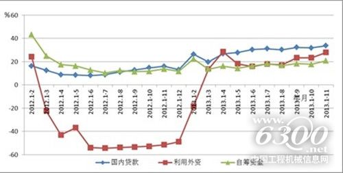 2012年-2013年1-11月房地产开发企业资金来源变化情况