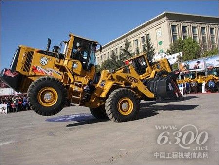 在活动现场,一台雷沃ETX装载机迅速倒立,整个车身只有前轮着地,重达24吨的整体车身重量均由两个前轮和一个车桥承载。在这种倒立状态下,不仅对于装载机的整体做工质量要求极高,对于装载机的液压系统更是严峻的考验。在这种极限考验中,雷沃ETX装载机表现自如,不仅能保持倒立,而且还能随着节奏劲爆的音乐欣然起舞,令在场观众叹为观止。
