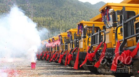 2014年3月10日,在东南某矿山基地,连续十多天的阴雨终于迎来了难得的大晴天,当天该矿山将迎来他们期待已久的新伙伴——来自同力重工的12台非宽体自卸车。当天,同力重工高层领导代表及用户公司相关领导亲临现场,共同见证此次交车仪式的盛况。