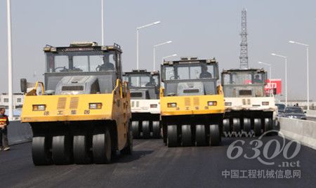 “就拿这台XP302型轮胎压路机来说吧,可算是徐工的经典车型了,很多路面施工现场,都能看到它的身影。该机型采用充气轮胎对铺层进行压实,对压实材料无破损作用。可以通过增减配重和改变充气轮胎的充气压力来提高压实性能。由于轮胎弹性所产生的揉压作用,使铺层材料在各方向产生位移,形成均匀、密实、无裂纹的表面,可延长路面使用寿命。可调间歇式洒水系统,满足了不同工况的需求,延长了水泵的使用寿命,避免了因水路故障而造成的停工现象,极大地保证了施工进程。”