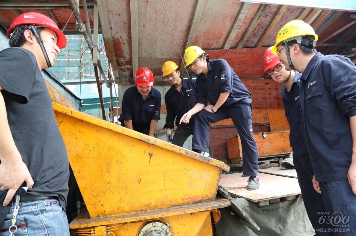华三行为全力支持广州东塔项目,提供的三一设备有3台超高压拖泵、2台泵车、4台三一布料杆、4台车载泵参与施工建设,目前所有设备运转正常。小编走进施工现场,看到华三行东塔项目经理陈柏威雄以及他的服务团队正在检修设备,小编上前采访华三行服务团队,陈经理告诉小编:“东塔目前已经进入冲刺阶段,450米以上的垂直泵送难度将大幅提高,为保障项目顺利进行,我们每天定时多次检查,以确保设备运转正常。”