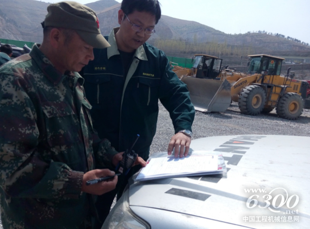 该用户于2013年10月购买山推SL50WA装载机,设备操作师傅反映设备使用情况良好,走访团队专业人员对设备进行仔细的全面检查,各部件运转正常。