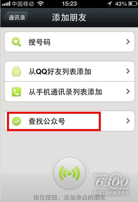 方法一:添加中国工程机械信息网微信号:中国工程机械信息网