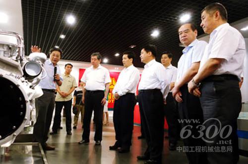 中国重汽集团公司党委副书记、总经理蔡东热情欢迎秦光荣一行,并陪同参观了济南动力部产品展厅和曼发动机生产线。