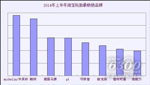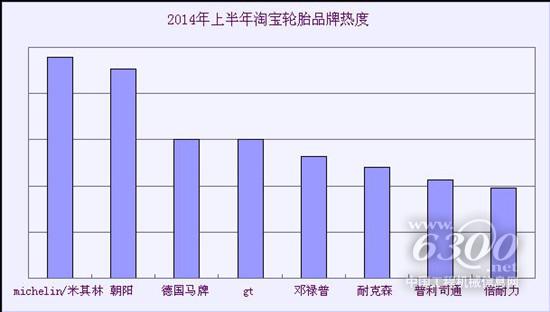 在淘宝天猫上半年度的轮胎热搜板上,全球知名名牌“米其林”以微弱优势领先其它品牌,将“2014年上半年度搜索热度冠军”称号成功收入囊中。而国产品牌“朝阳”以极微弱差距屈居第二,其他品牌如“gt”、“耐克森”、“邓禄普”、“德国马牌”等国际一线品牌也奋起直追,于上半年度斩获较多搜索量。