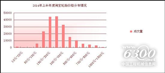 2014年上半年度,线上轮胎的销售价格各月份基本维持不变,从150元到1500元不等,而200-500元的轮胎价格区间依旧最受消费者欢迎,整个上半年变化不大。本月轮胎200-300元、300-400元的成交量大破40000件大关,均达44000件以上。由此看出,平民化的价格仍然最受消费者的欢迎。
