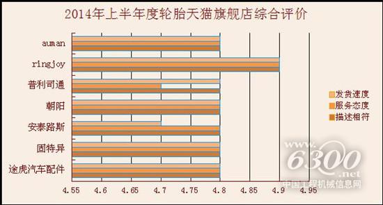 据中国轮胎商务网()电商研究中心统计,目前进驻天猫旗舰店的轮胎品牌共有9家。从现有数据来看,无论是产品描述相符程度,还是商家发货速度和服务态度,各家轮胎品牌旗舰店的分数均维持在中等水平。此外,从消费者的打分和评价方面可以看出,目前商家的描述相符和服务态度的满意度普遍较低,提醒商家仍需在这两方面多下功夫。