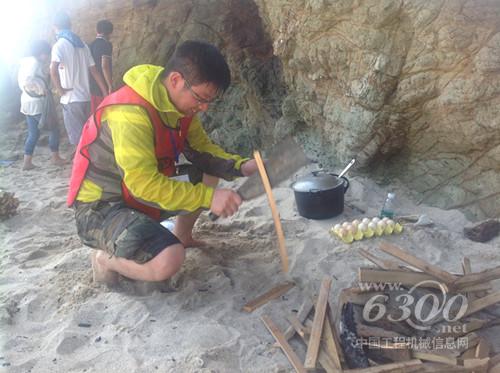 又饿又渴地熬了一天,虽然所在team因为最后一名获得的食材最少,可是我们毫不抱怨,依然热情洋溢得在海边架起了炉灶。在夕阳下,“钻木取火”开启了一天中的第一顿饭。