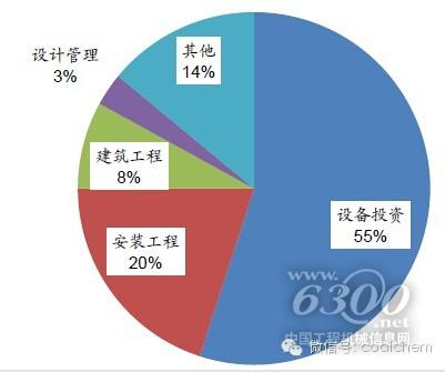 总体来看煤化工投资中设备约占一半。煤化工投资分布情况是:设备占55%,安装工程大约占20%,建筑工程大约占8%,其余为设计、建设期利息费用等。因此,煤化工发展前期最大的受益者将是设备类企业。