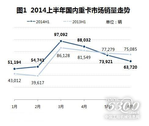 由于复苏形势的持续,以及去年同期基数较低,重卡市场一季度持续以两位数增长,尤其是2月分,增幅高达38.2%。而4月起,重卡市场增速放缓,4月增速降至7.9%,5月市场销量下滑4.3%,6月更是大跌了15.1%。这主要由于4月起,重卡市场逐渐步入淡季,同时去年同期因国四实施预期所带来的消费提前,导致了基数较高。