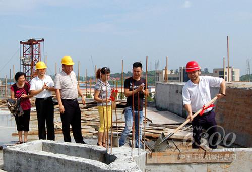 恒天九五(衡阳)产业园是恒天九五重工做大做强的一项重要举措,该产业园建设在其工程指挥部全体人员的不懈努力下,在恒天集团、恒天重工的关心支持下,在衡阳市政府、珠晖区政府关注下,该产业园管网、路基建设已全部完工,主体工程正在按照设计要求顺利推进,产业园雏形已经呈现。上午9:58时,礼炮冲天,鞭炮齐鸣,在办公大楼顶端,衡阳纺机公司党委书记、总经理欧阳烽在众人的见证下,把最后一铲混凝土注入大楼主梁,象征着这两幢大楼顺利封顶。(