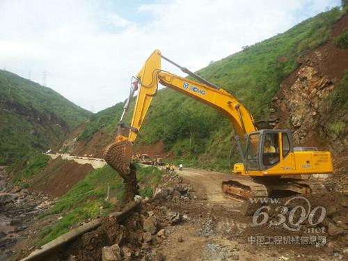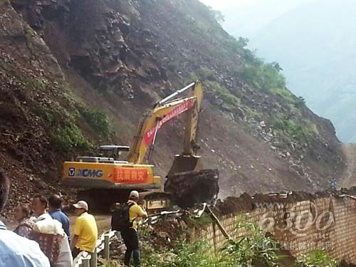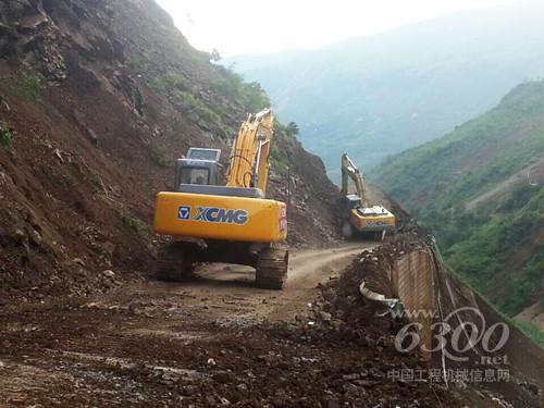 徐工挖掘机进入灾区在龙头山镇塌方地段紧急抢修道路