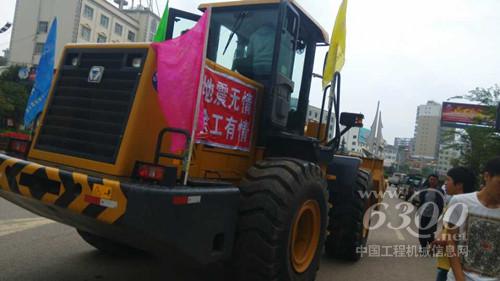 通往灾区的路上泥泞不堪,一台台整齐的工程机械设备在雨中严阵以待,“地震无情,徐工有情”的红色条幅显得更加鲜艳。卞泳介绍说,在通往灾区的路上禁止大型车辆和民用车辆进入,只允许救灾车辆通行,维持交通秩序的警察看到徐工的救援车队时,对徐工勇担大任的行为表示赞赏和钦佩,并第一时间紧急疏导交通让徐工装备快速通过。