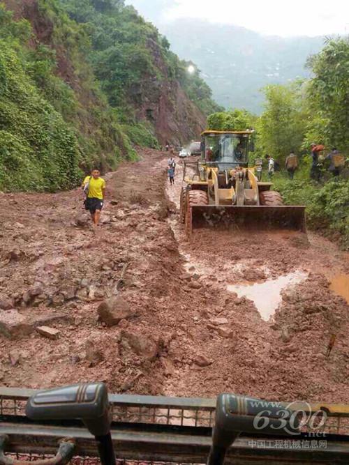 厦工装载机疏通塌方 设备搭起移动爱心桥