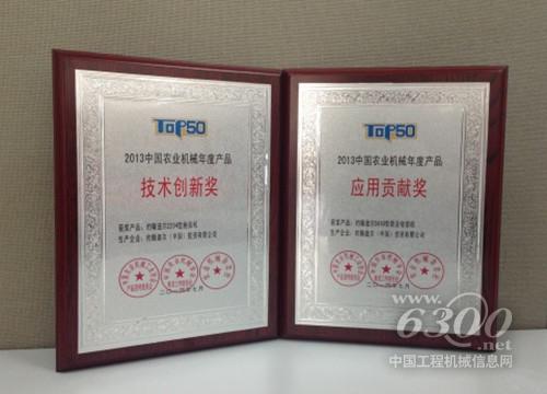 约翰迪尔荣获”2013中国农业机械年度产品TOP50评选”2个重量级奖项