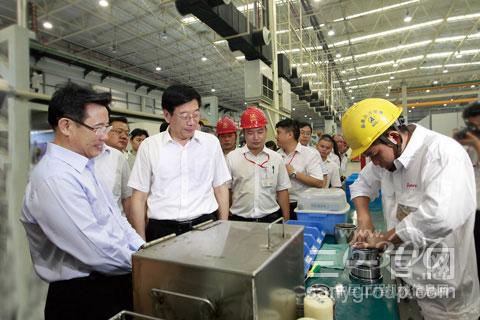 徐守盛边走边听,看到生产线上,行架机械手、机器人、滚动输送链等关键设备一应俱全,他对生产线的现代化程度赞叹不已。得知娄底产业园已成为中国规模最大、品种最多的液压油缸研发、生产基地时,他十分高兴,他希望三一继续加强创新,在自身发展壮大的同时,能带动更多的企业集群发展,为社会做出更大贡献。