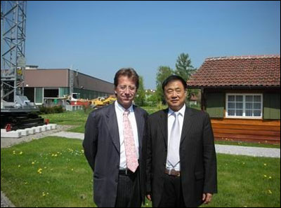 Liebherr中国公司总经理葛书凡博士与陈正利秘书长在Kirchdorf的Liebherr轮式挖掘机厂合影