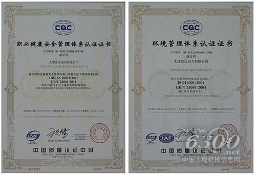 近日,天津雷沃动力有限公司顺利通过了中国质量认证中心的第三方管理评审,并被授予《OHSAS 18001:2007职业健康安全管理体系认证证书》和《ISO 14001:2004环境管理体系认证证书》,为企业今后的良性发展打下基础。