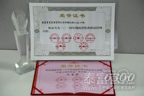 8月15日,在湖南省第三十五次质量管理小组代表大会上,泰富重工焊接机器人QC小组荣获“湖南省优秀质量管理小组”荣誉称号,并通过在大会发布QC成果——《提高行走机构焊接合格率》,在全省313个优秀QC小组中脱颖而出,经专家组评审,荣获发表赛二等奖。此外,大会还发布了QC成果评比结果,泰富小组在全省313个优秀QC小组中脱颖而出,《提高行走机构焊接合格率》经专家组评审后荣获发表赛二等奖。