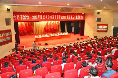 8月29日上午,合肥市政务大楼小会堂内流光溢彩、高朋满座,合肥市2012-2013年度优秀企业家表彰暨2014合肥企业五十强发布大会在此隆重召开。省委常委、市委书记吴存荣出席会议并讲话,市长张庆军主持会议,市委常委、常务副市长韩冰宣读了有关表彰通报。