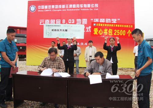 9月4日上午,中国重汽成都王牌公司向云南鲁甸灾区贫困大学生设立的爱心“添翼助学”基金及爱心书包捐赠仪式在云南昭通隆重举行。云南鲁甸民政局、受赠书包学校代表、近两百余人参加了活动。