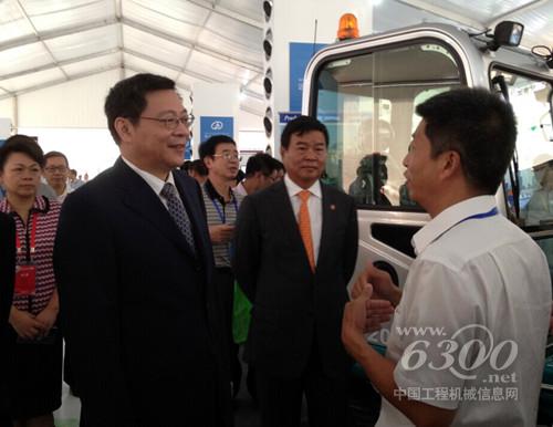湖南省省长杜家毫对山河智能的展台表现出极大的兴趣