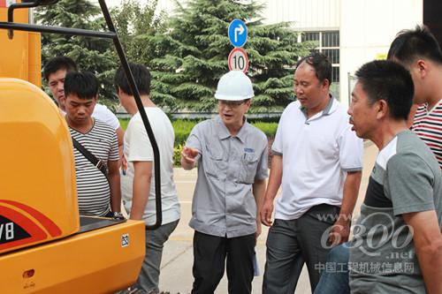在样机展示区,雷沃挖掘机技术人员针对不同机型,就发动机功率、铲斗挖掘力、斗容、挖掘半径、回转速度等产品性能参数和维护保养技巧,为客户代表做了详细解说。并对最新的雷沃挖掘机D系列产品进行了介绍,代表团成员了解了自己中意的机型后,忍不住实际操作了一把雷沃挖掘机新机型,操作体验后连连点头称赞:“雷沃挖掘机真不错,开着很顺手”。