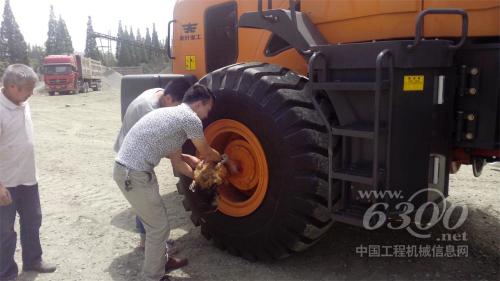 那是2014年5月份,李琳完成服务工作后经过一个石料厂,听闻一阵阵熟悉的发动机声音和卸料的石子儿撞击声。李琳循声而去,看见里面有两台装载机正在施工,出于对装载机的热爱和敏锐的服务洞察力,他停下了脚步,走进该石料厂。在寻找到司机和该石料厂老板邓总后,和他们进行了详细的交谈。在交谈的过程中李琳介绍了自己是英轩重工装载机在成都雅川机械设备有限公司的一名服务人员,此次前来是想过来看看你们的装载机的使用情况,是否有需要检修、技术咨询的需要。邓总觉得这名服务人员很有心,就让李琳对石料厂里的装载机进行查看。李琳拿着扳手绕车一周,然后在车底检查震动较大的螺栓是否松动,并仔细查看是否有渗油现象,检查油品是否到了保养时间,黄油润滑是否做得到位、空滤是否维护。又将原来有油污的地方用随车自带的抹布擦拭干净,将现场恢复原状。最后叫上司机,认认真真地教他每天、每半月、每月应该如何维护装载机。