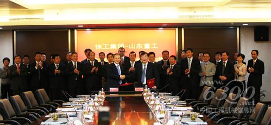 9月22日,在徐工集团本部,山东重工、潍柴动力董事长谭旭光与徐州工程机械集团有限公司董事长王民共同签署战略合作框架协议,双方决定在资本领域、配套市场、技术研发、海外市场开拓等方面展开全面合作,借助行业优势资源,共同推动民族装备制造业的振兴。
