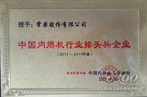 近日,中国内燃机协会在对2010年评出的行业排头兵企业进行复审后,经过专家初评和评审组终评等几个阶段并经公示后,又综合各方面意见和企业在行业中的影响程度,公布了2011-2013年度行业排头兵企业名单,常柴股份有限公司等26家企业被授予中国内燃机行业2011-2013年度排头兵企业称号。