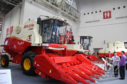 国内自主品牌最大喂入量12公斤的雷沃谷神GN120联合收割机亮相武汉全国会