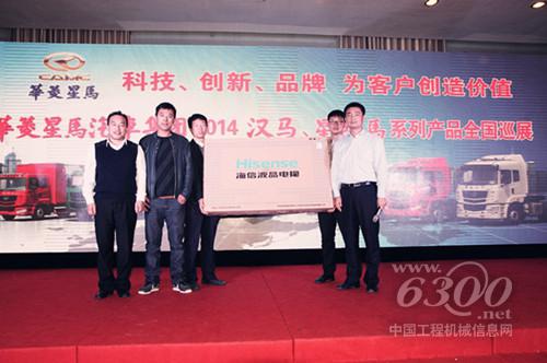 11月23日,华菱星马将巡展座谈会首次放在了县一级的城市——茌平,也足以说明这里的重卡市场容量之大和公司对这里的市场重视程度。当天下午,在该县正泰大酒店一楼同心厅,300余名茌平地区的客户齐聚一堂,共同感受汉马、星凯马系列新产品的先进技术工艺。会上,万和通公司总经理王士民上台作了发言,集团公司董事长刘汉如作总结讲话,集团公司总经理助理薛永昌致欢迎词,会议由集团营销分公司副总经理高琦主持。