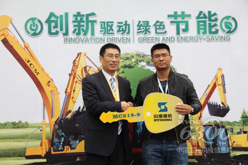 仪式上,山重建机总经理夏禹武亲手将代表着创富的挖掘机钥匙交到了徐和手中。