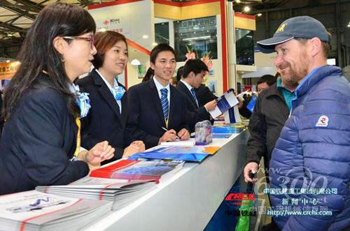 此次参展,在上海新国际博览中心E1馆的展区,中国铁建150平米的展台设计简约时尚,融展板、影像、模型、沙盘为一体,展出了ZTT7565双模式斜井TBM,ZTS14930泥水平衡盾构机、HPS系列混凝土喷射台车、900吨提运架一体机、500米长轨铺设机等高铁施工高端设备模型以及配以高清视频宣传片。集团两台ZTT7565双模式斜井TBM,ZTS14930泥水平衡盾构机模型安装有刀盘、推进油缸、管片机、输送带、撑靴等装置,可实现动态模拟仿真,能全面的向观众展示盾构的工作原理,备受前来参观的国内外高端机械设备人士的青睐。来自俄罗斯、印度、巴基斯坦、马来西亚等国家和地区的参观者络绎不绝,环绕模型不停拍照,向工作人员探求产品特性和工作原理,并不时为盾构机的总体设计技术、运行安全综合技术、关键配套技术与装备研究技术等等设计发出惊叹的赞许。
