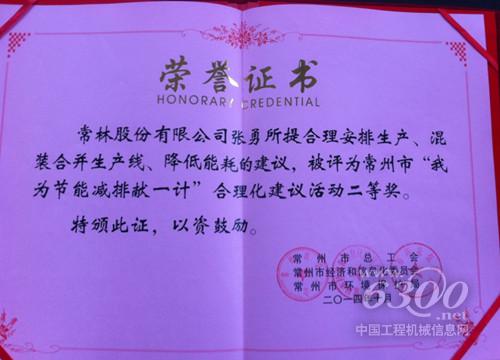日前,由常州市总工会、常州市经信委和常州市环境保护局联合开展了"我为节能减排献一计"合理化建议活动,常林股份员工霍海毅申报的“切割用气节能改造”和张勇申报的“合理安排生产、混装合并生产线、降低能耗”两个项目均获活动二等奖。