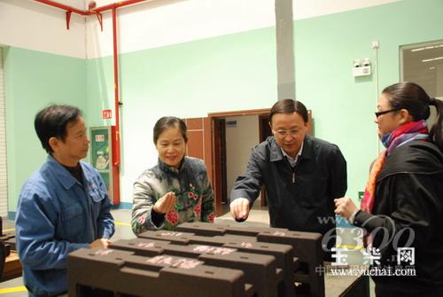 吕登红(右一)向刘世斌一行介绍无模铸造3D技术