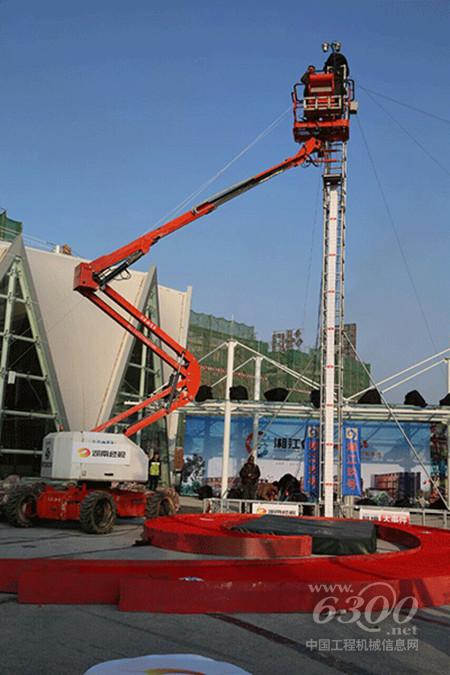 直播活动全程持续一个小时,期间星邦重工的15米柴油曲臂式高空作业平台一直承担了场地搭建,人员和物资运送的任务及直播现场拍摄的角色,将主持人和摄像师送到高空进行体验和电视直播,最佳角度记录了整个活动的过程,起到了非常重要的作用。