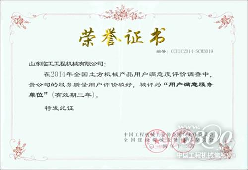 日前,2014年全国土方机械产品用户满意度评价调查结果公布,凭借在售后服务领域的突出表现,山东临工荣获“用户满意服务单位”的称号,同时,山东临工生产的LG953N装载机、LG933L装载机和LG6225E挖掘机被评为“全国用户满意产品”。