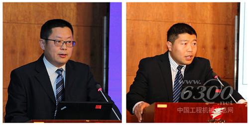 山重建机营销部部长许永林(左)与客服部部长魏相华(右)作营销与客服工作介绍
