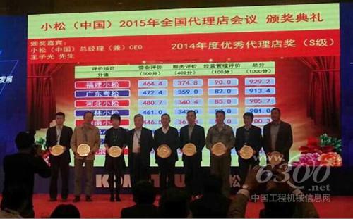 2015年1月13日,小松(中国)全国代理店会议在海口隆重召开,福建小松总经理侯一江,副总经理郭志敏,营业本部直辖部部长黄超等应邀出席本次会议,福建小松在2014年度小松代理店评比中以综合评比第一名的优异成绩荣获“小松2014年度优秀代理店奖(S级)”。